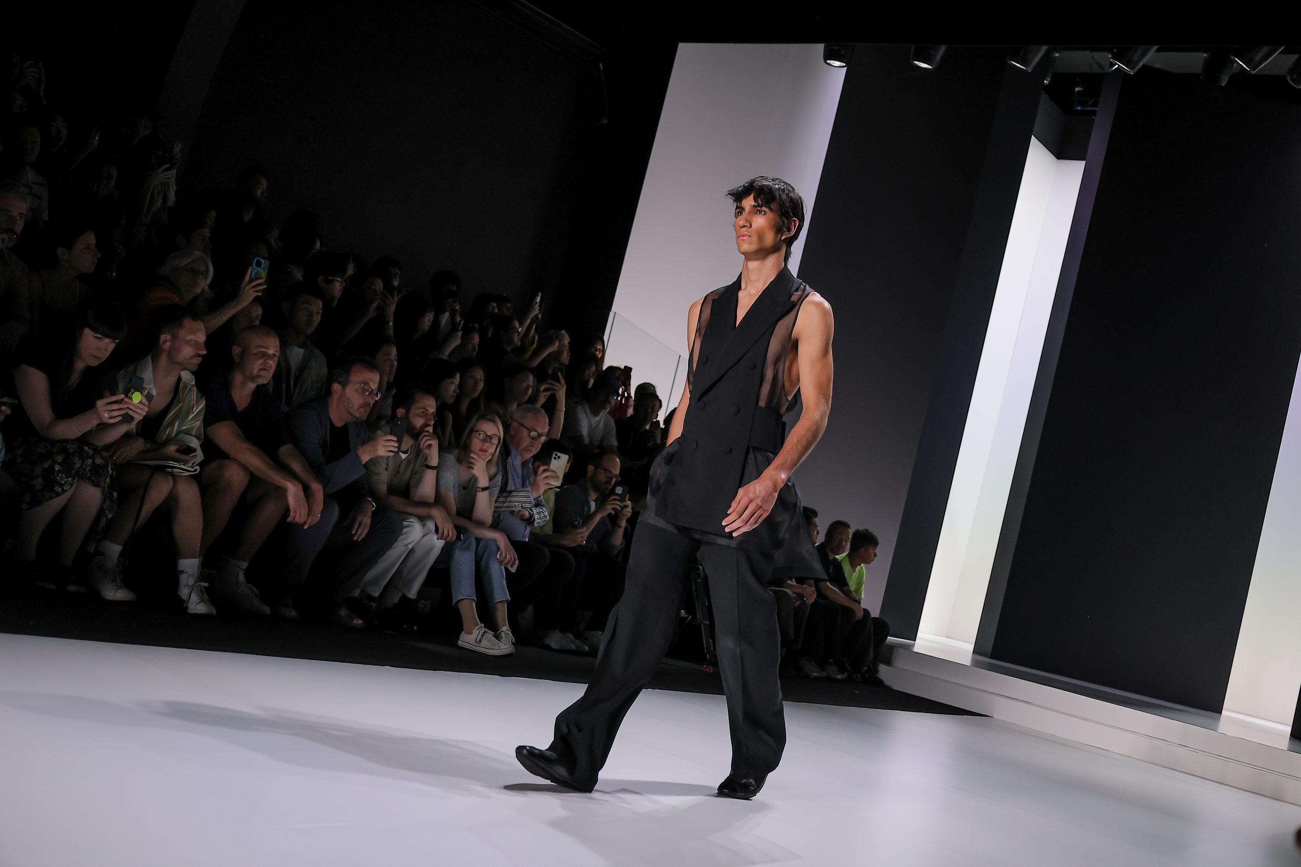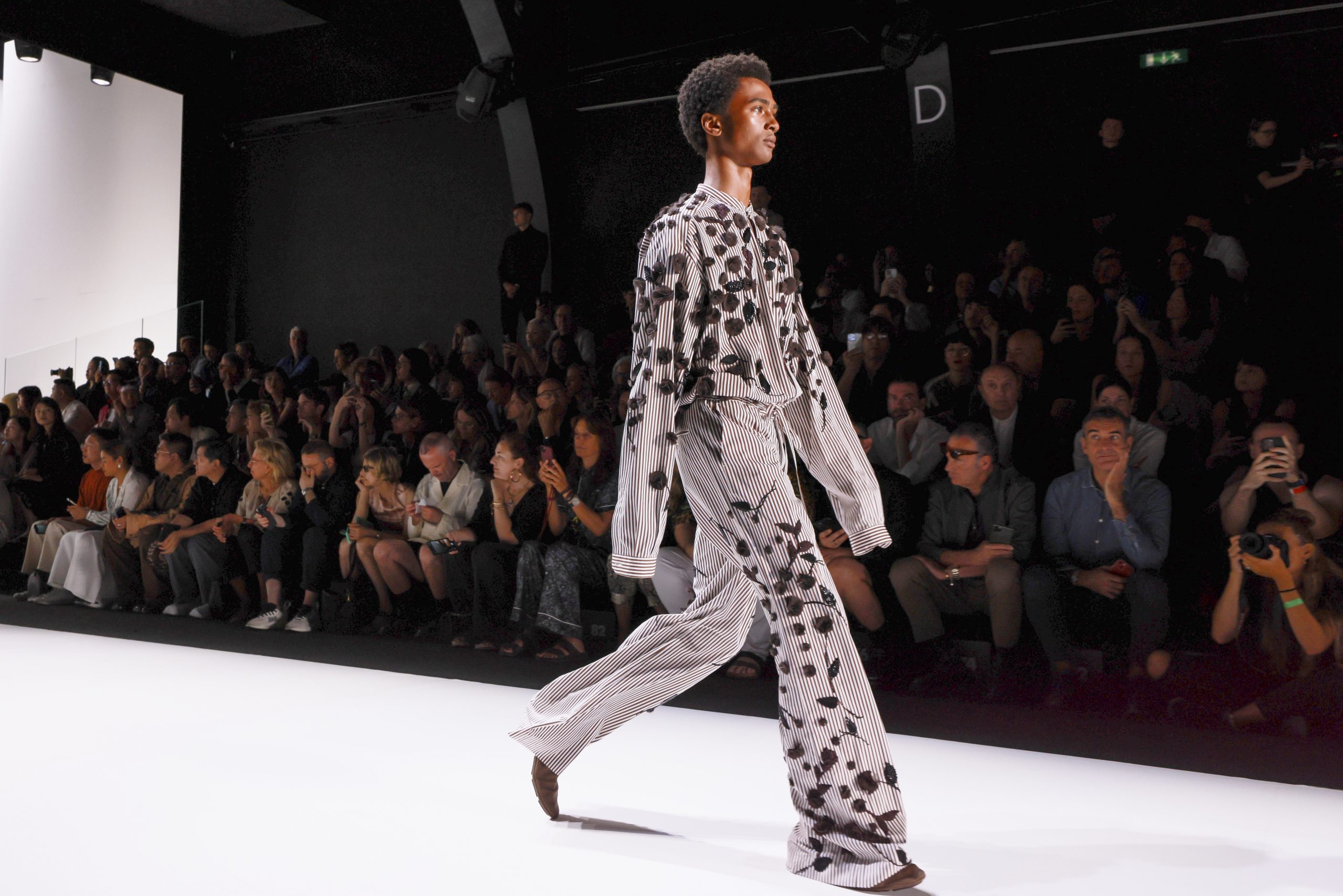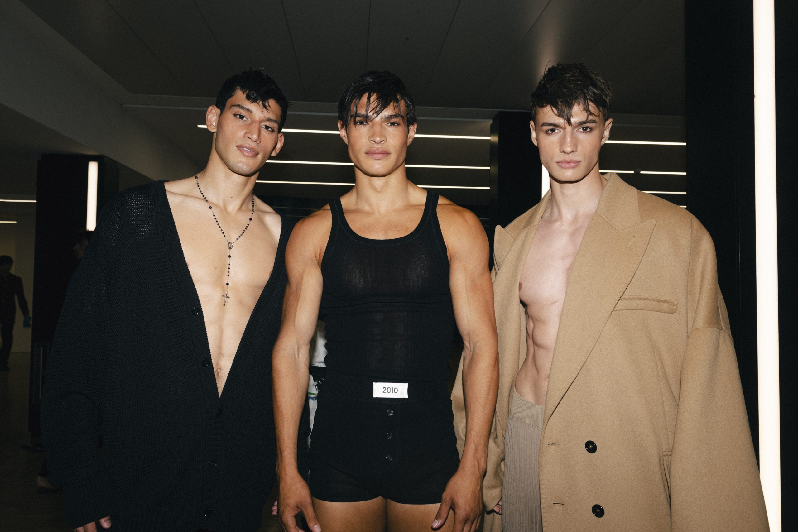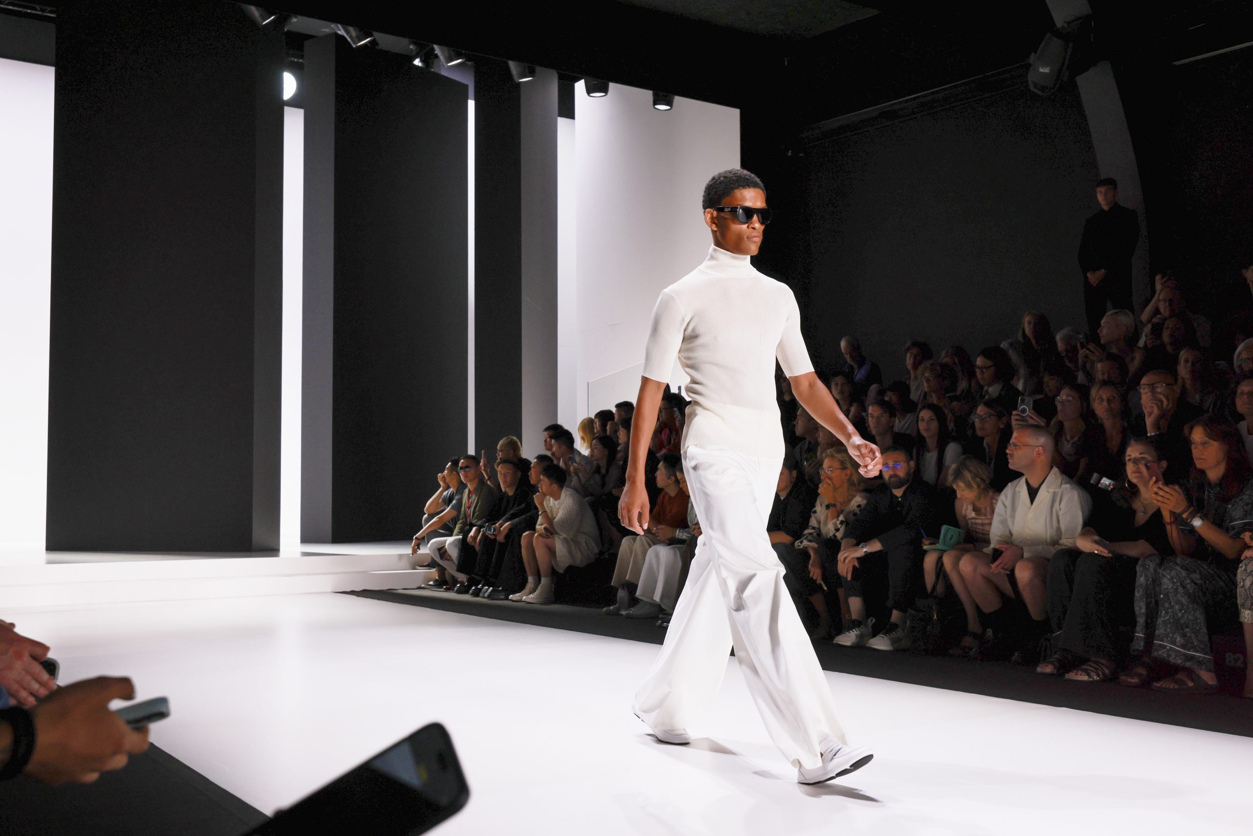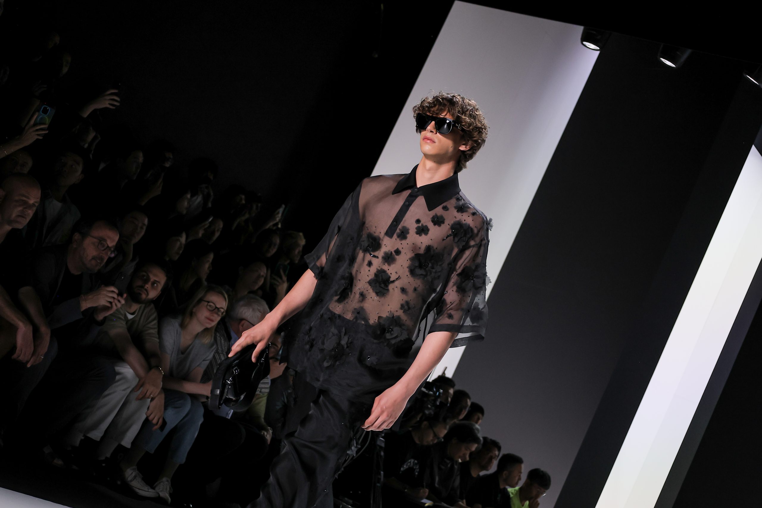 The collection is a succession of color blocks, pure/ethereal white, milk white, sand beige, camel, dark brown, pearl, stone gray ending with absolute Sicily black. Embroidery and materials, wools of “Piacenza” that allow thanks to the inherent characteristics of the material itself, to build garments with structured volumes; suits and jackets thus take a new shape and life as true sculptural works and enhance the male body. Over coats in double cashmere, silk crepe, 3D effect embossed jersey and embroidered silk organza.